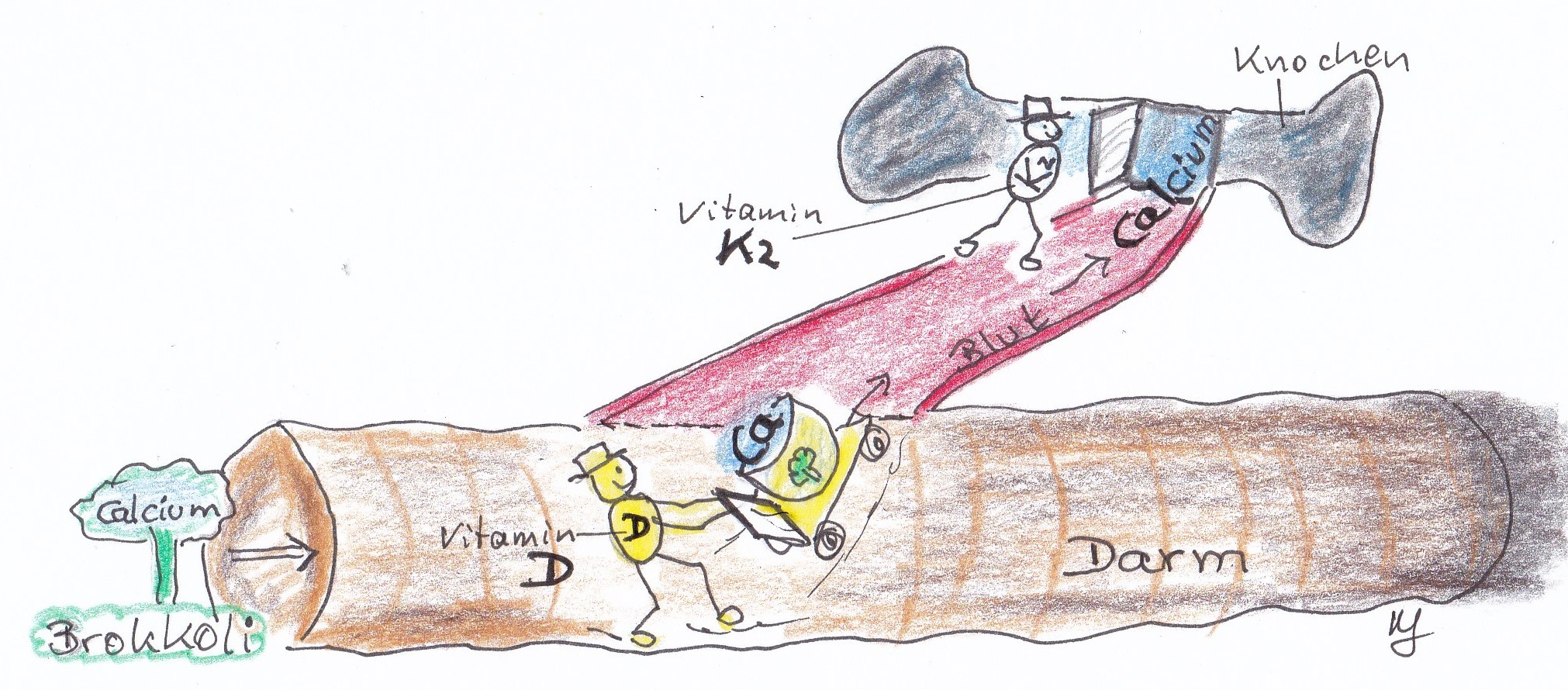 • durch D3 aus dem Darm ins Blut gelangt